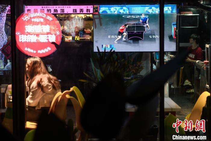 中新社重庆8月10日电 (梁钦卿)“太有沉浸感了,感觉像在奥运会现场一样。”9日晚,张欣怡在重庆观音桥商圈一家电影院内观看巴黎奥运会乒乓球男子团体决赛后如是感慨。张欣怡是中国乒乓球运动员马龙的球迷,她表示,影院的大屏幕看着过瘾,大家一起欢呼加油,氛围非常好,比一个人在家里看感染力更强。
