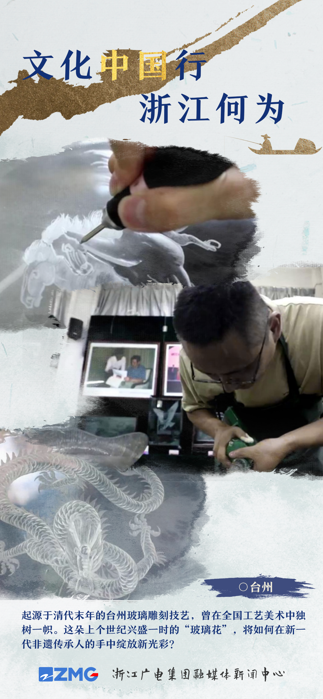 台州玻璃雕刻技艺起源于清代末年,是在海门、路桥和天台等地流行发展起来的地方传统手工技艺,在全国工艺美术中独树一帜。上个世纪,依托玻璃工艺品市场,台州玻雕兴盛一时,大放异彩,但随时间推移,这项技艺的延续和活化,成为摆在传承人面前的一道难题。玻雕技艺如何适应新时代、活化焕新?