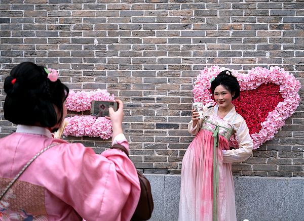 2024年8月9日,长沙市开福区潮宗街历史文化街区,市民和游客参加“在开福,与爱不‘七’而遇”主题游园夜会。活动现场 ,市民、游客一起寻宝老街,聆听省、市文明家庭代表讲述好家风故事。