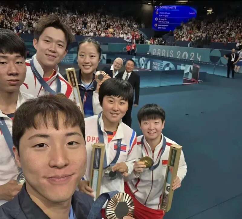 乒乓球赛场上,德国选手奥恰洛夫在比赛之余也关注着中国队的表现。驰骋国际赛场十余年间,他与马龙、樊振东等国乒队员有过很多次交手,赛场上的对手,在场下也结下了深厚的友谊。而在混合双打的颁奖现场,中朝韩三国年轻选手们合影留念,这超越体育、跨越国界的一幕获得众多网友点赞。
