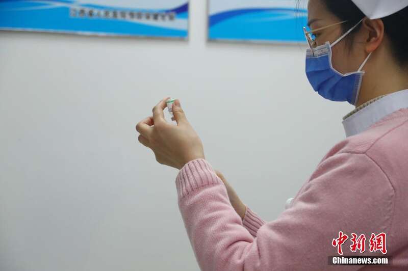 资料图:一名护士正准备为接种人员注射新冠病毒疫苗。 中新社记者 刘占昆 摄