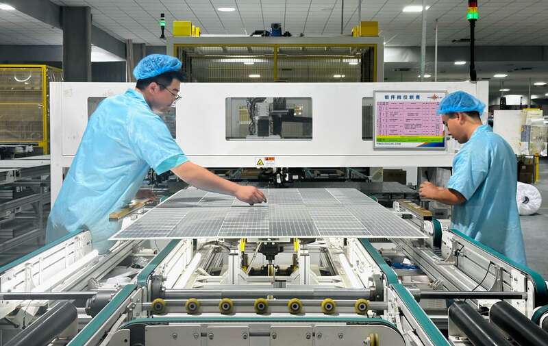 中国青年报客户端讯(中青报·中青网记者焦敏龙)一块光伏板的制作,需要在生产线上经过电池划片、串焊、排版、层压、测试、包装等过程。8月8日下午,中青报·中青网记者跟随“铸牢共同体 中华一家亲”主题采访活动,来到位于宁夏回族自治区吴忠市同心县的英利新能源(宁夏)有限公司,在生产车间里看到,生产线工人与机械臂分工协作,“熊猫3.0”型号的光伏组件从这里组装出品。