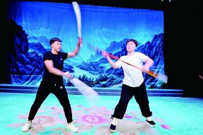 一场演出结束后,孙帅康和青年演员们卸下浓装,却都不离场。他们再次扎进舞台,空翻、抬腿、飞脚、朝天蹬,力求每个动作、每句台词都能达到完美的境界。不畏艰难,不怕重复,他们只为在舞台上呈现出最真实、最青春的风采。