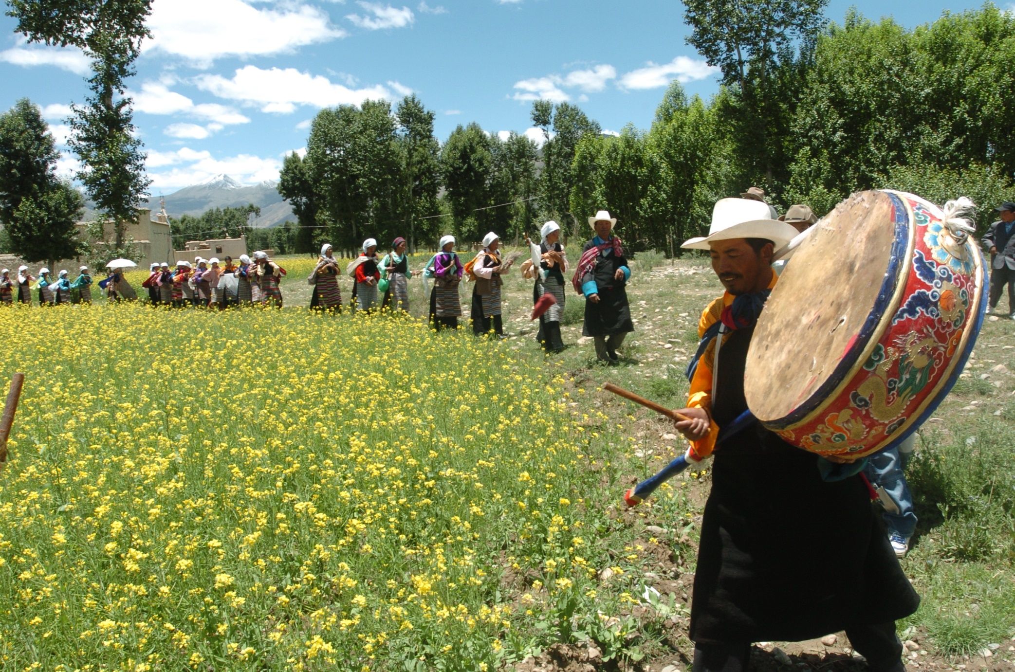 林周,藏语译为“天然形成的沃土”,被誉为“拉萨的后花园”、“拉萨的粮仓”,天然肥沃的土壤把林周县分为两种特殊的地貌,草原和耕地,养育了众多的林周人。图为林周县群众庆祝“望果节”。