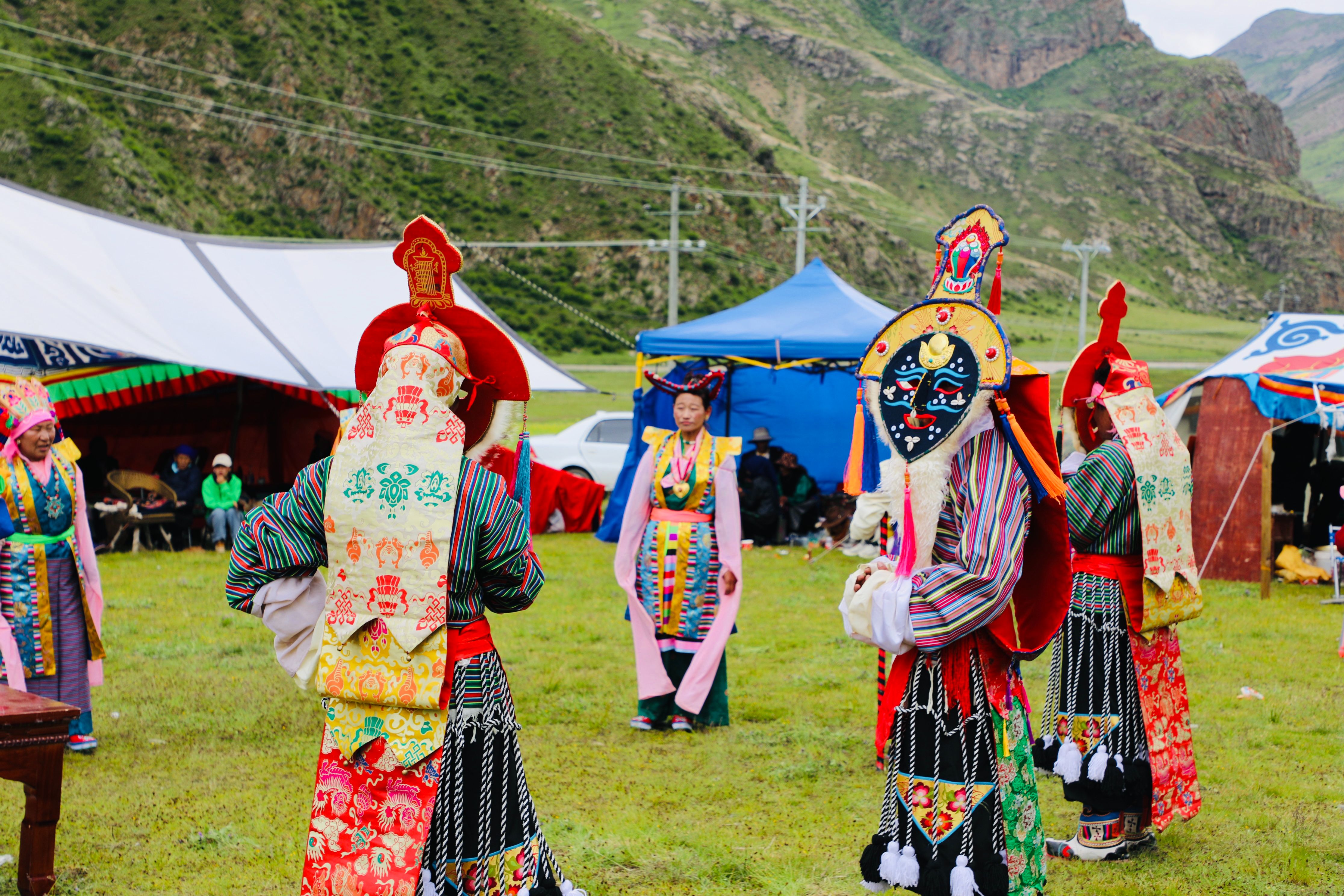 近日,拉萨市林周县各乡镇根据实际情况陆续举办“望果节”,每年举办的“望果节”活动内容丰富,有传统赛马、马术表演、歌舞表演等活动。图为身穿戏服的藏戏表演者。