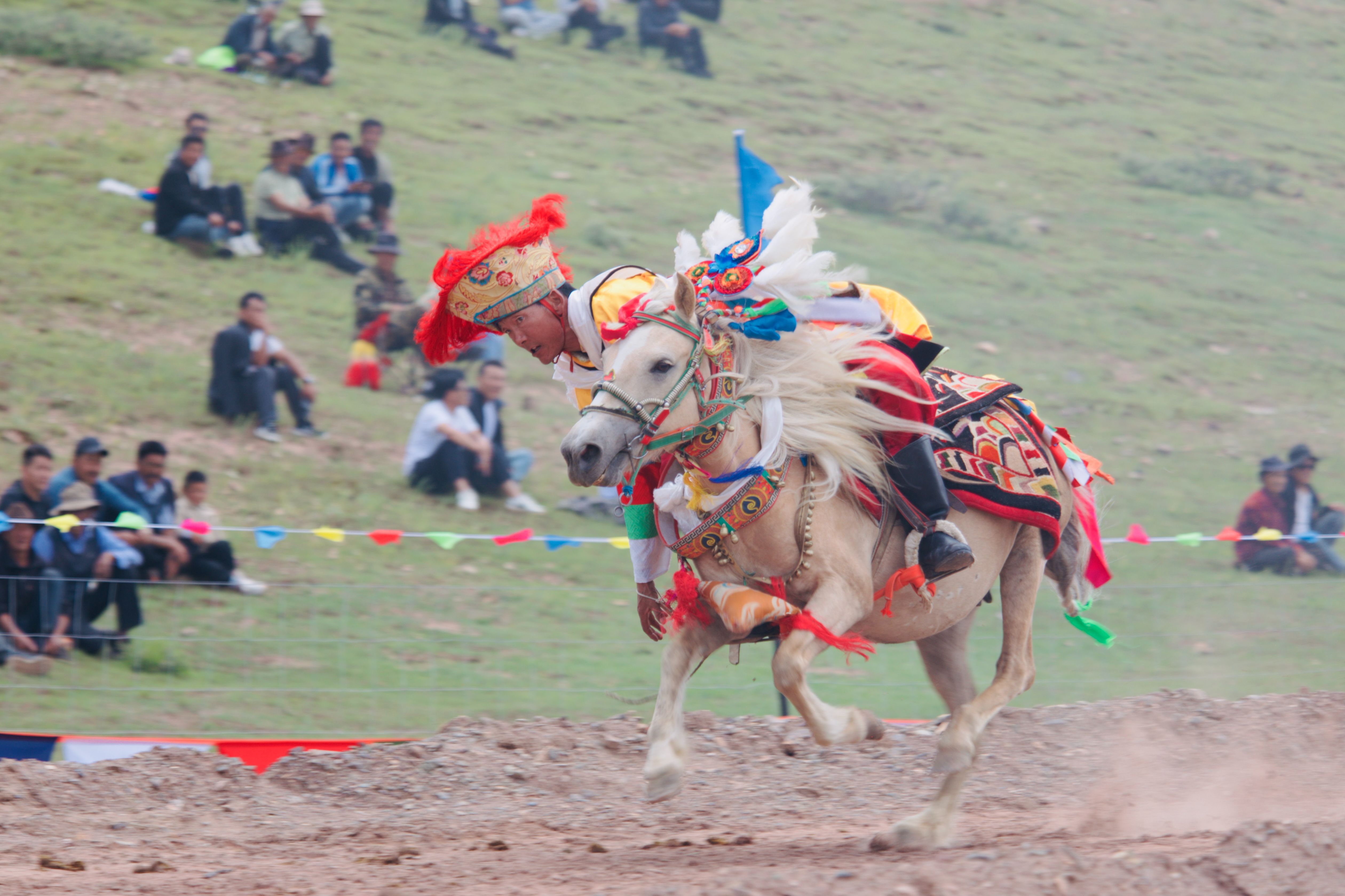 “望果节”是国家级非物质文化遗产,是藏民族欢庆丰收的传统节日,已有1500多年历史。图为参加赛马节的选手。