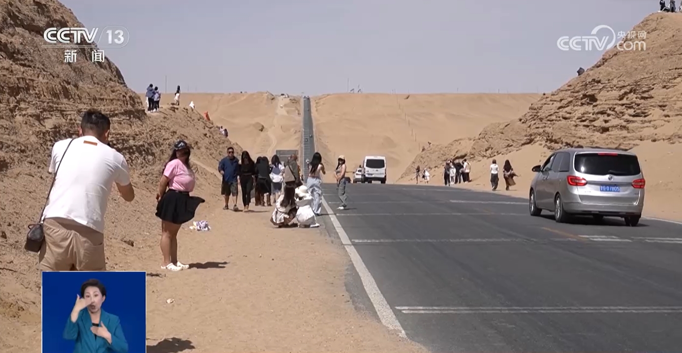 而在格尔木市G315国道一处网红“U”型路段,由于该路段落差大、跨度远、戈壁景色壮观,有游客不仅将车随意停在路边,还不顾往来车流横穿公路,甚至有人就站在道路中间拍照。