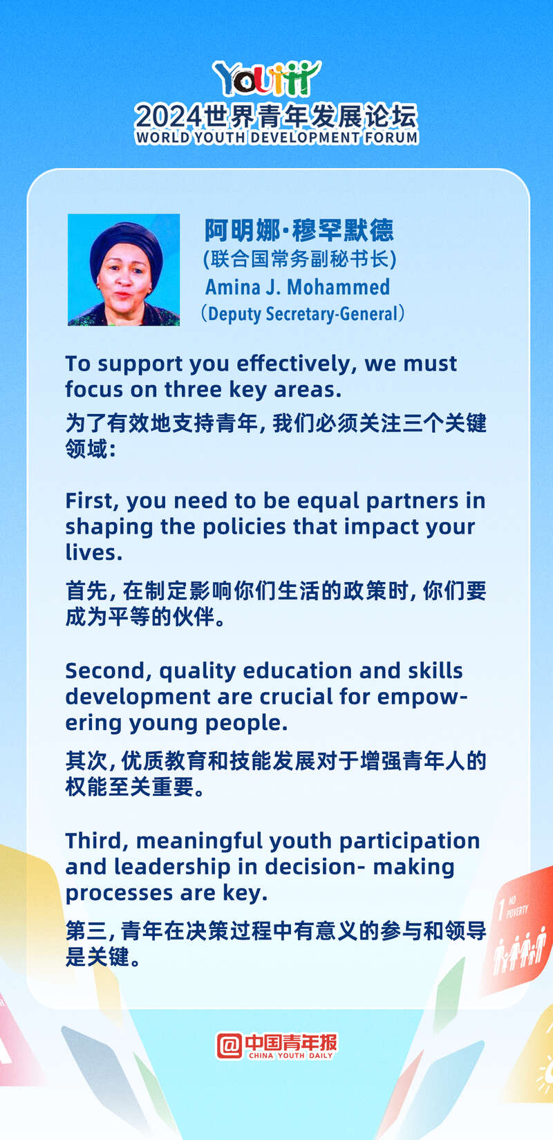 开幕式环节,联合国常务副秘书长阿明娜·穆罕默德发表了视频致辞。
