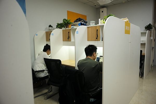 2024年8月13日,山东济南,位于领秀城金街的恒能共享自习室,吸引附近很多年轻人付费享受一个静谧的学习场所。
