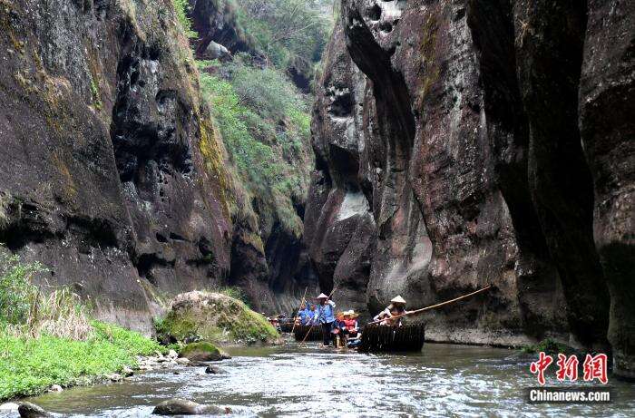 中新网三明8月12日电(记者 苏亦瑜 吕明)“哎咦呀喂……”老艄排工黄盛腾一边撑着竹排带领游客游览上清溪,一边哼起当地山歌。“现在我们的山更清了、水更绿了,游客对我们上清溪的风景也是竖起大拇指,very good!”作为本地人的黄盛腾谈起近年来家乡的变化,满是自豪与喜悦。