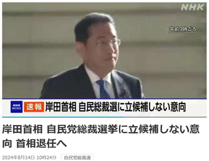 报道称,这意味着在9月自民党新总裁被选出后,岸田将不再担任日本首相。