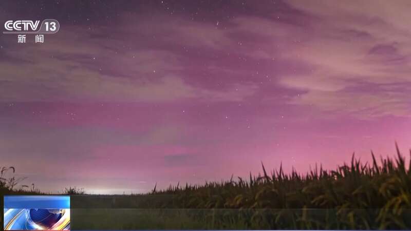 天文摄影爱好者 冼林辉:大概七点半左右,我们开始拍,就发现左边天空泛红了。我们就怀疑这个是极光。然后我们就拍摄了一段延时视频,发现确实是极光,那个光在跳。我们知道后就非常兴奋,因为我们是奔着流星雨去拍的,然后发现能拍到极光和流星雨同框,就特别兴奋。