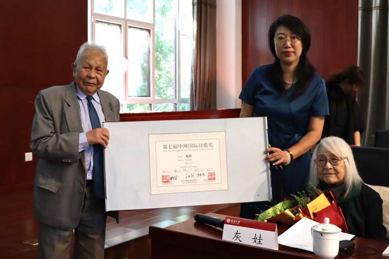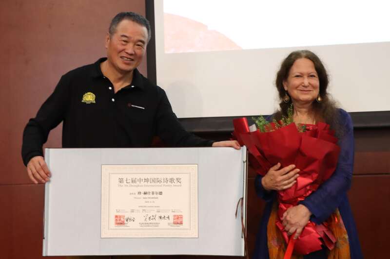 中国青年报客户端讯(中青报·中青网记者 蒋肖斌)8月14日,2024中美诗歌节暨第七届“中坤国际诗歌奖”颁奖典礼,在北京大学举行。中国诗人灰娃和美国诗人珍·赫什菲尔德(Jane Hirshfield)获奖。