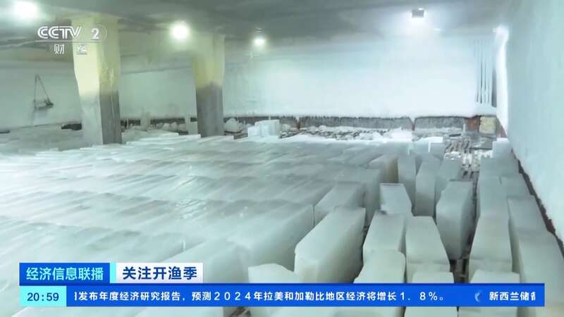 制冰工人:产能基本和往年一样,每天大概制冰1500条,晚上要加班,现在生产线基本24小时不停。