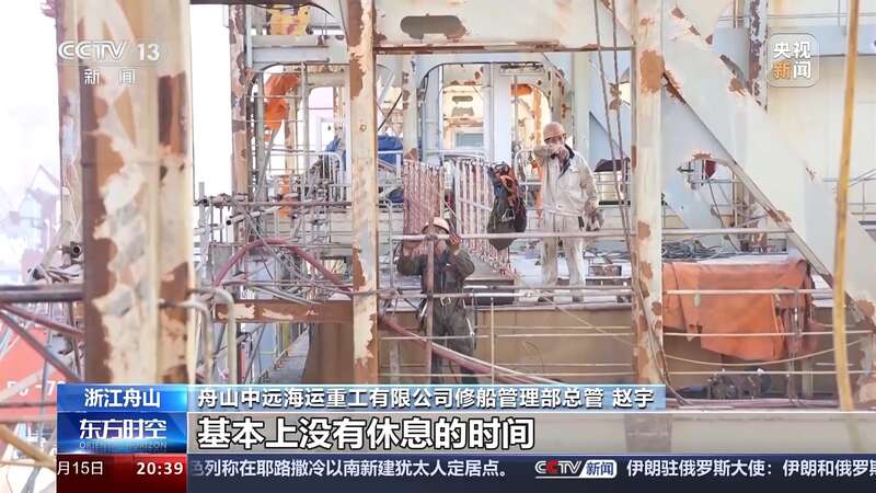 舟山中远海运重工有限公司修船管理部总管 赵宇:到目前为止,我个人负责的船只,走一条来一条,基本上没有休息的时间。对公司来说业务增加了、效益好了,那对我们个人来说,个人的钱包就鼓了。