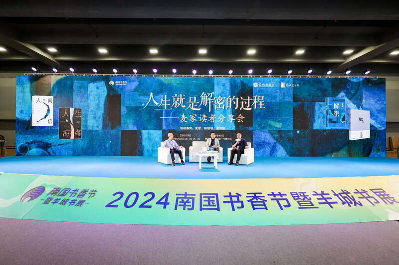 活动现场,麦家与北京大学中文系教授、花城文学院联席院长陈晓明,中山大学中文系教授、评论家谢有顺在琶洲展馆展开对谈,分享他创作背后的故事。