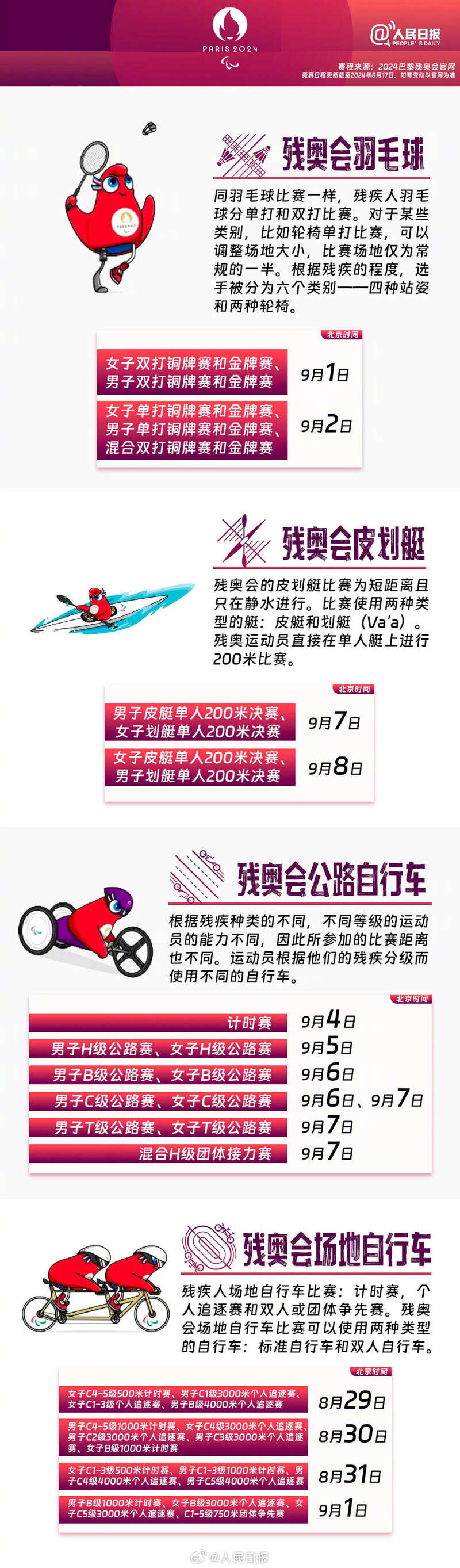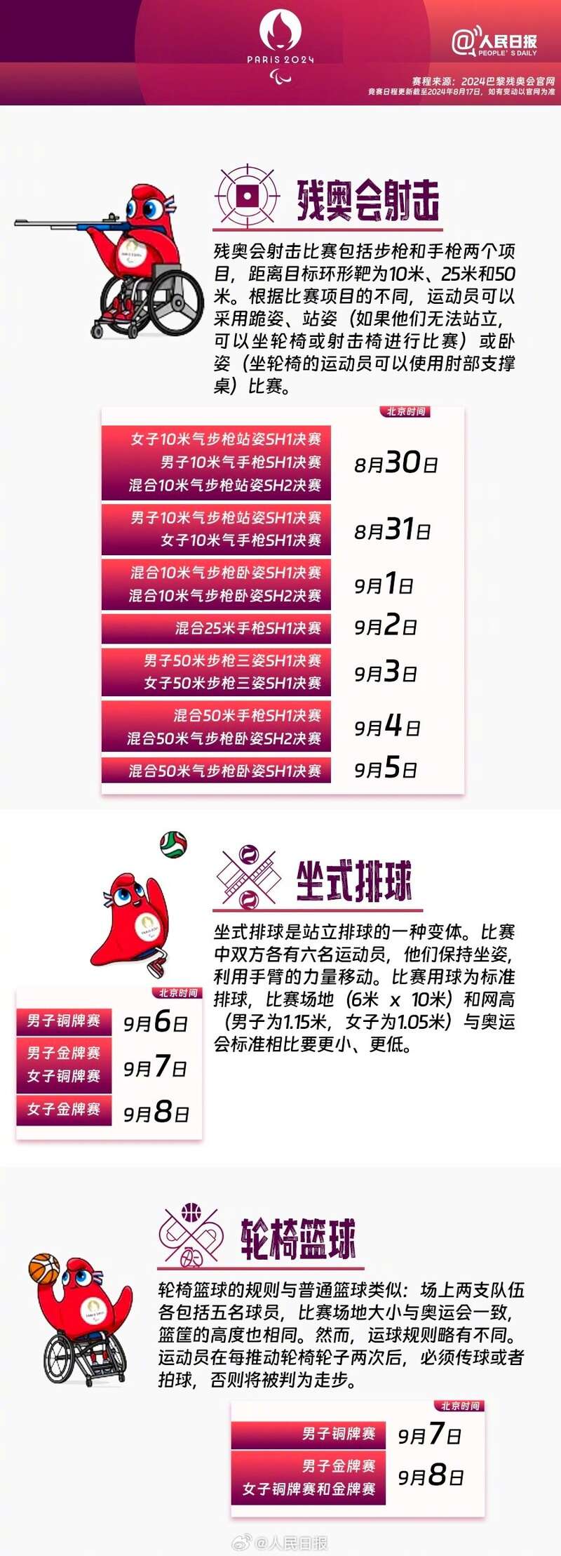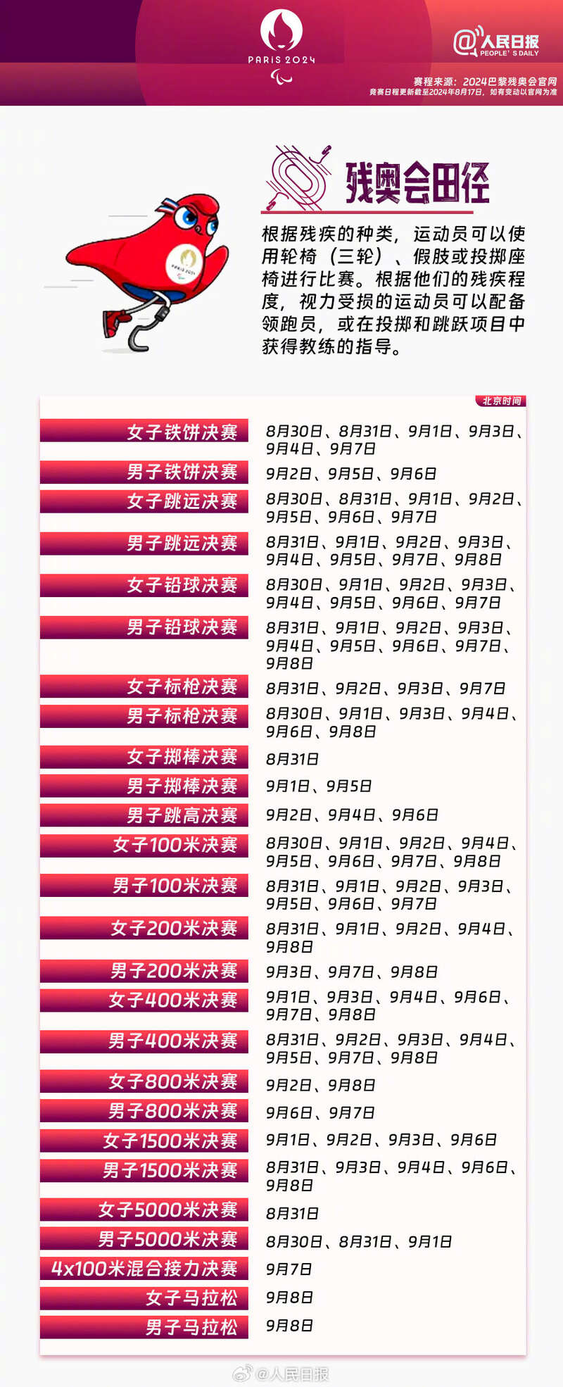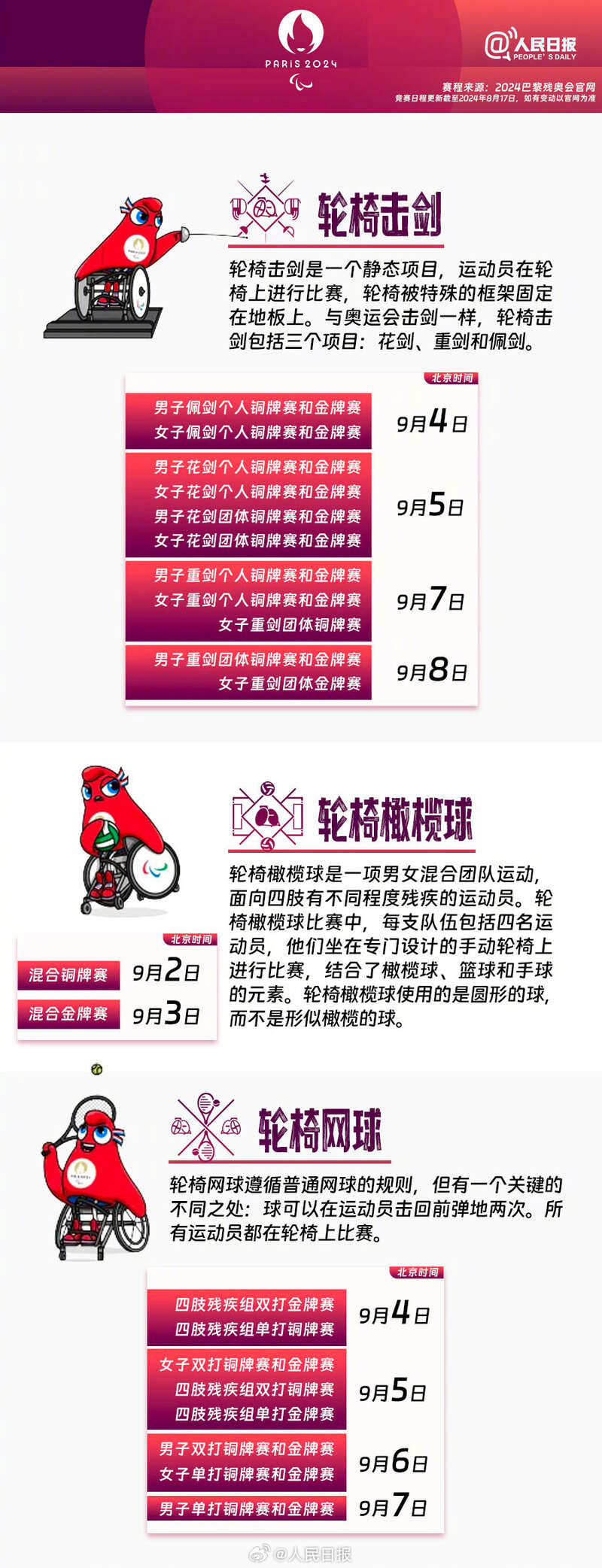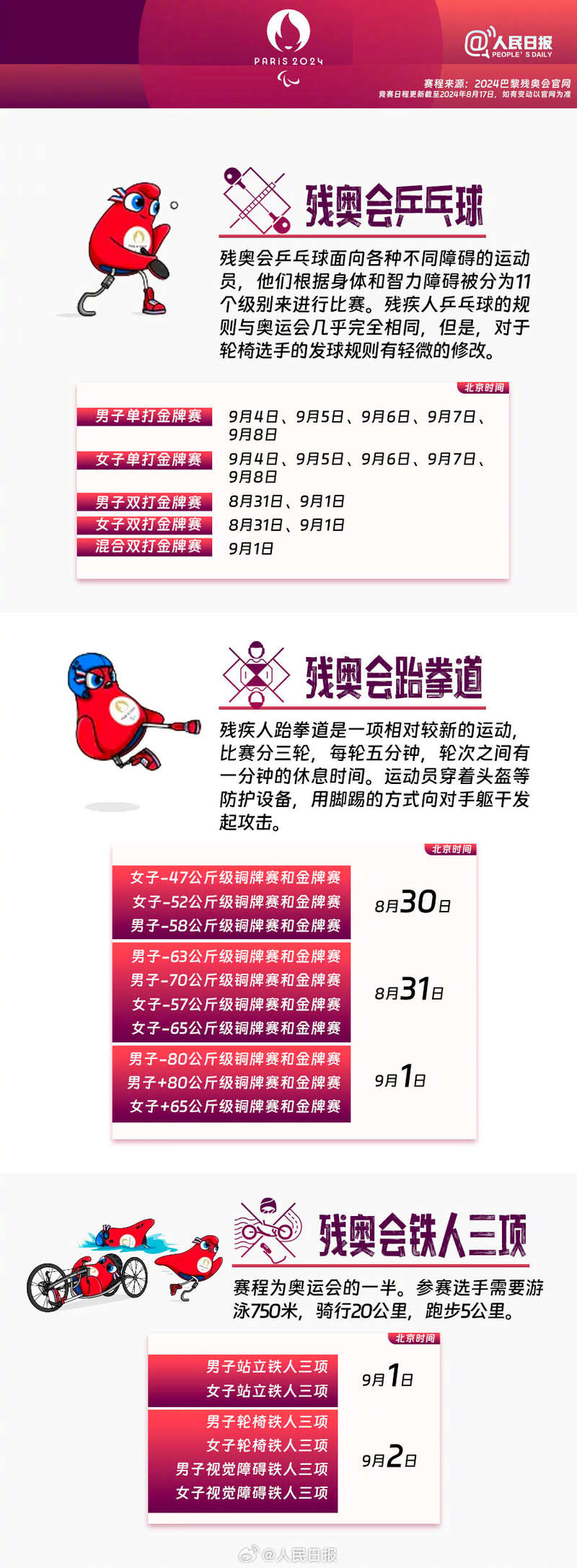 巴黎残奥会将于8月28日至9月8日举行,共设22个大项、549个小项,284名中国运动员出征。超越自我、挑战极限,残奥运动员们也值得你的关注和掌声。巴黎残奥会还有10天举行,一起期待,为中国代表团加油!