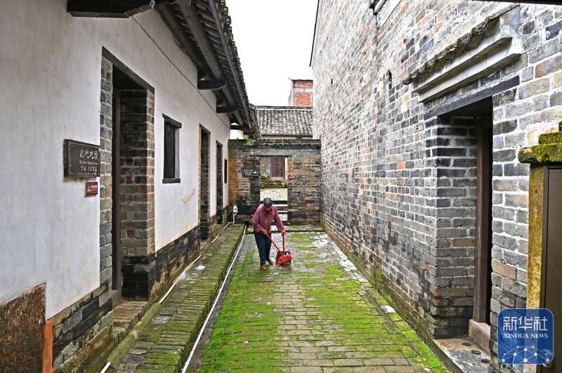 8月15日,一名村民在大芦村古宅里打扫。