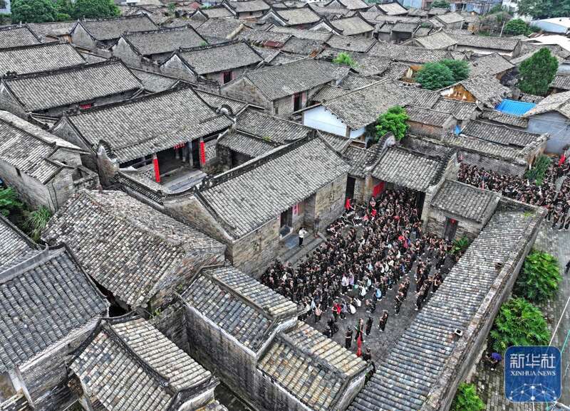 8月15日,人们在大芦村镬耳楼参观(无人机照片)。