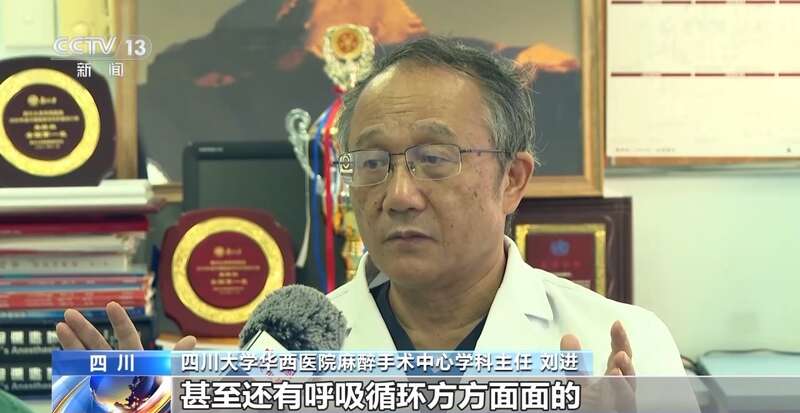 四川大学华西医院麻醉手术中心学科主任 刘进:麻醉之后这些保护性的反射,甚至还有呼吸循环方方面面的保护性反射就消失了。所以没有这些保护性反射的被麻醉的病人,实际上离死亡仅只有半步之遥,我们10%的工作是让病人不疼不动,90%的工作是保证病人安全,医学院毕业之后,至少要培训5年才能够单独地来做临床麻醉工作。