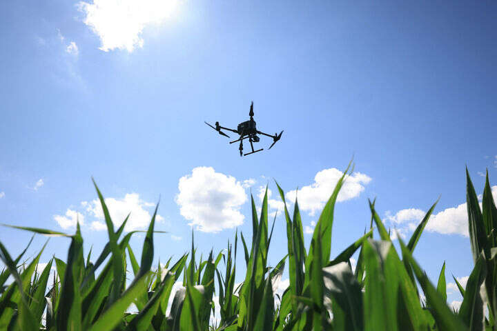 北纬48度线上,北大荒集团赵光农场有限公司的大豆地块里,搭载着光谱成像设备的无人机正在农田上空往复飞行。十几公里外的科技服务中心内,技术员郝思文坐在大屏幕前查看田间实况影像。他轻点鼠标,农田作物长势、病虫害等全部信息便生成在一张图上。