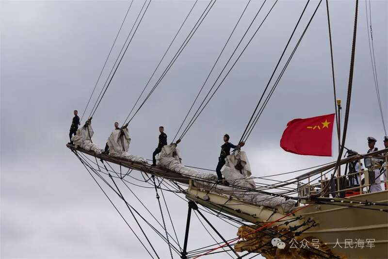 海军破浪舰站桅学员