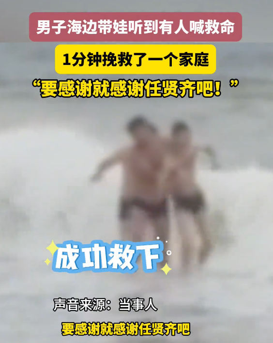 看到两名男子被海水卷走,离岸边越来越远,形势危急,他不顾个人安危跳进海里,几经周折,终将两名落水人员成功救上岸。