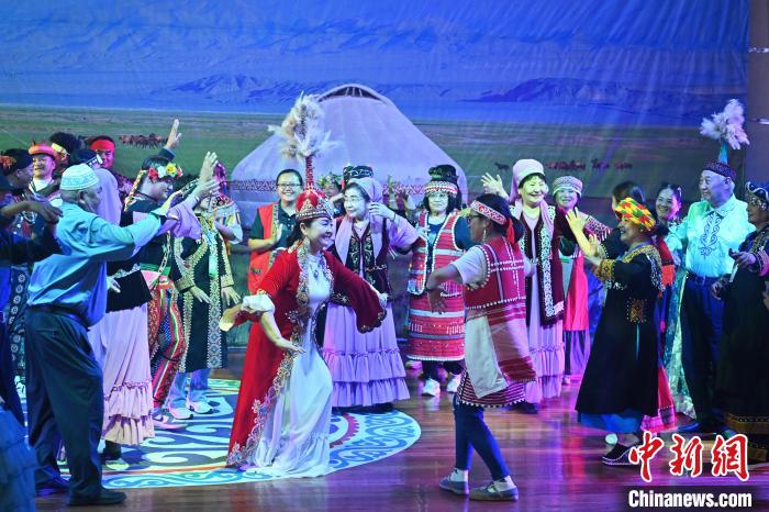 在民族风情园内,一场民族文化交流联谊会将此次参访行程推向了高潮。各民族纷纷展示了本民族的特色舞蹈和音乐,最后在哈萨克传统舞蹈《黑走马》的欢快乐声中,台胞们和哈萨克族民众一同载歌载舞。