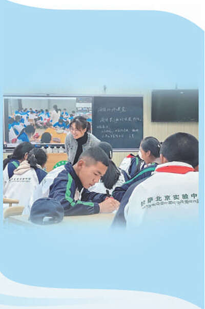 【镜头】上课铃声响起,援藏教师王瑞蕾走进拉萨北京实验中学多媒体教室。透过电子屏幕,京藏两地师生隔屏相望、亲切问候。一堂传承中华优秀传统文化的思政课拉开了序幕。