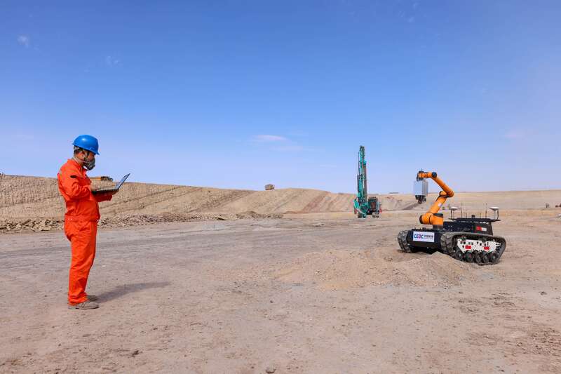 易普力新疆公司准东分公司经理助理刘令介绍,在五彩湾一号露天煤矿,该公司通过钻机智能化改造,研发智能化现场混装炸药车、验孔机器人、填孔机、护孔机等设备,打造智能穿爆、智能采剥与数智化管控平台。