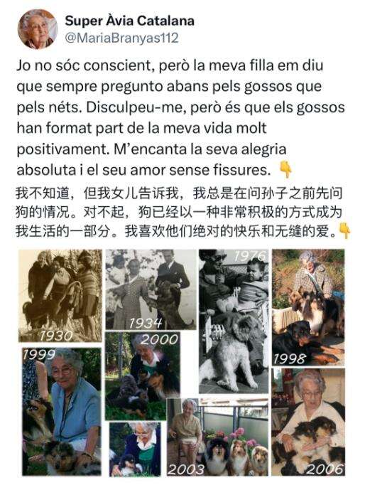 所以,该吃饭的时候吃饭、该睡觉的时候睡觉,保持一个规律有序的生活很重要。同时经常和家人朋友保持联系,多去户外接触大自然,甚至养一个宠物可能对长寿都有帮助。从莫雷拉在社交媒体上日常生活分享中也能看出来,老人非常喜欢狗,经常发布与自己宠物狗的照片。②