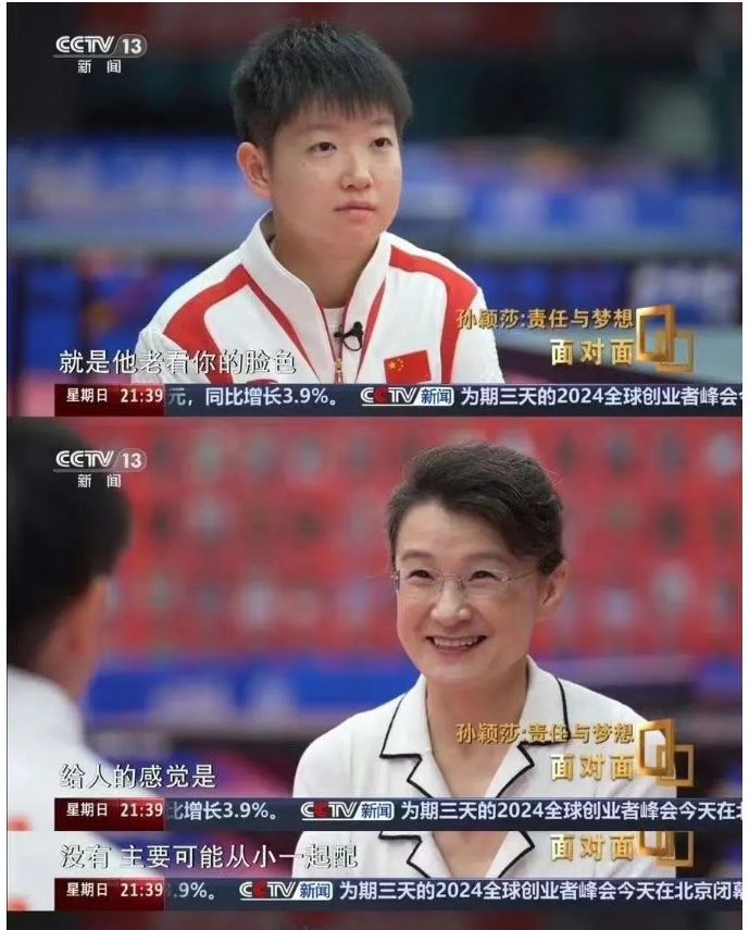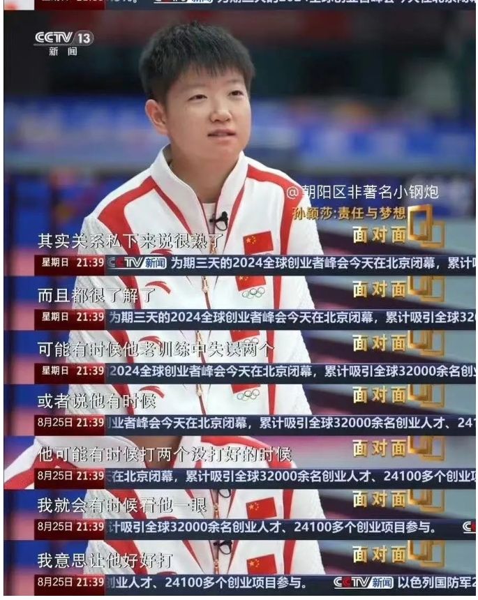 8月25日晚,央视《面对面》节目专访孙颖莎。