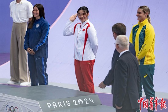 颁奖仪式上,这个19岁的四川姑娘专门展示了乌发中的一支白色发簪。邓雅文对中青报·中青网记者表示,这是自己拿第一个世界冠军前戴的簪子,“不知道为什么,它突然又出现在我的行李中”,一个突如其来的巧合戳中了她,“我决定戴上它,它很中国,适合奥运会”。
