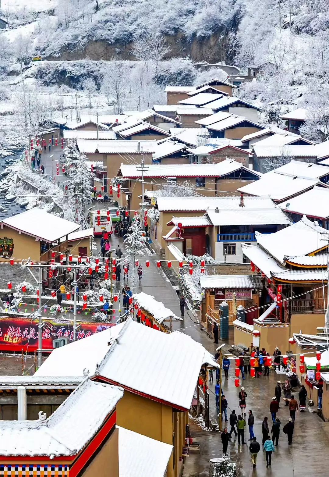 红檐白脊,民居错落有致