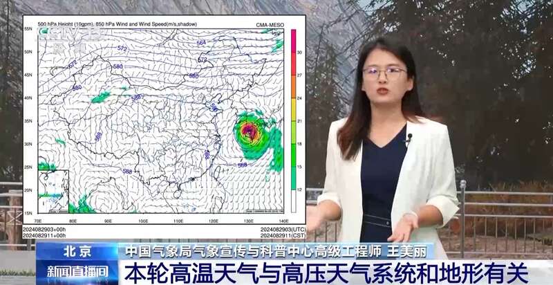 中国气象局气象宣传与科普中心高级工程师 王美丽:8月下旬立秋之后,川渝地区出现的持续性高温,主要是因为大陆高压和西太平洋副热带高压呈现非常强大且打通的态势。在高压的控制下,川渝地区上空晴朗少云,在太阳辐射增温和气流下沉增温的共同作用下,两个地区的气温出现了直接攀升的状态。