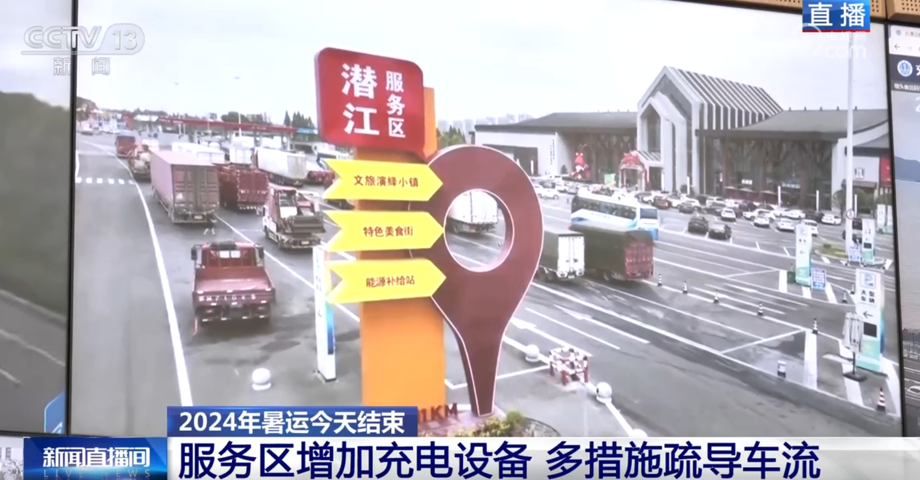 接下来我们看到的是湖北潜江收费站,这里还增设了光伏充电桩,此外为了快速疏解车流量,潜江服务区开通了湖北省首个高速公路服务区ETC出口车道,从服务区到潜江市区只需要5分钟,而不用绕行收费站。