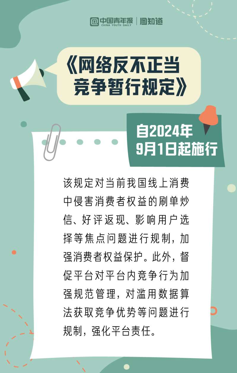 2024年9月,线上消费刷单、网络信息保密、个人向社会求助等行为有了新规范,一批与生活息息相关的新规即将施行,一起看图了解。