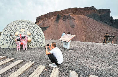 在6号火山脚下,灰黑色的地面满是火山岩,让人感觉犹如置身火星。记者看到,许多游客身着白色或粉色宇航服,体验一把“星际漫步”。“推荐来6号火山,外观仿佛月球或火星表面,也是租赁宇航服打卡拍照的必游之地,随手一拍就是大片。”“如果你对火山喷发口充满好奇,想要一探究竟,那么3号火山是满足你好奇心的最佳选择。”“5号火山是火山群中保存最完整的一座。”他们拍照并分享旅游攻略到社交平台后,又吸引更多游客前来。