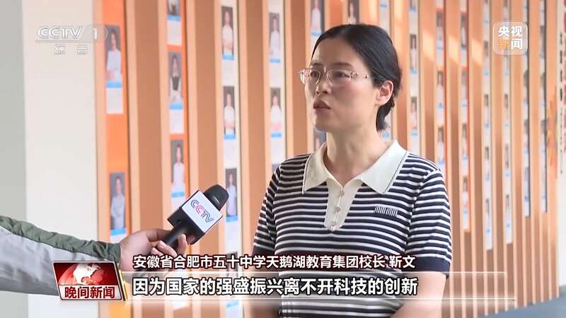 安徽省合肥市五十中学天鹅湖教育集团校长 靳文:因为国家的强盛振兴离不开科技的创新,离不开科技人才的培养,所以要从娃娃抓起,培养他们对科学的热爱和兴趣。