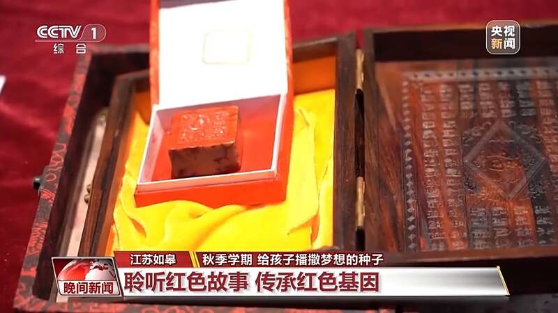 开学第一课,聆听红色故事,厚植爱国主义情怀。在江苏省如皋市档案馆,学生们凝视着一枚古朴的印章,聆听背后的故事。