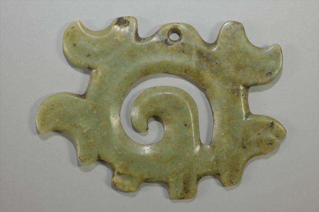 要说红山文化玉器中的代表作,当属现收藏于中国国家博物馆、学名为“碧玉C形龙”的“红山玉龙”。1971年,它在赤峰市翁牛特旗赛沁塔拉嘎查重见天日,以墨绿色的身躯,高约26厘米的雄姿,一千克的重量和生动精美的雕琢,赢得了“中华第一龙”的美誉。