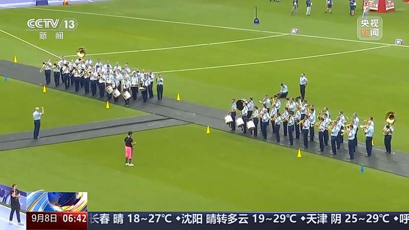 当我走进法兰西体育场,就如同置身一片紫色的薰衣草花田,非常的唯美浪漫。现在,场地中央有一支管乐队正在进行排练。我们想象一下,闭幕式当晚,当紫色跑道转换成闪耀舞台,夜色中有了声光电的加持,这里又将带给观众一场怎样的视觉盛宴呢?