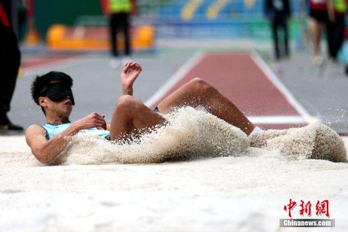 31岁的邸东东是一名视障跳远运动员,他在本届赛事男子T11级跳远项目中以6米85的成绩打破世界纪录并成功卫冕。