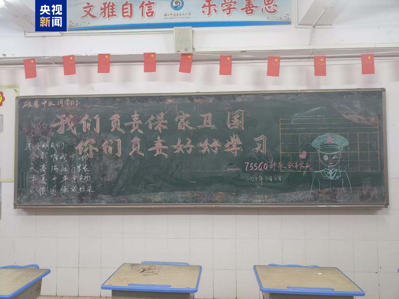 第74集团军某旅官兵说,虽然不能与孩子们面对面交流,但想给孩子们留下一份礼物,便用画板报这种特殊的形式和学生们进行交流。
