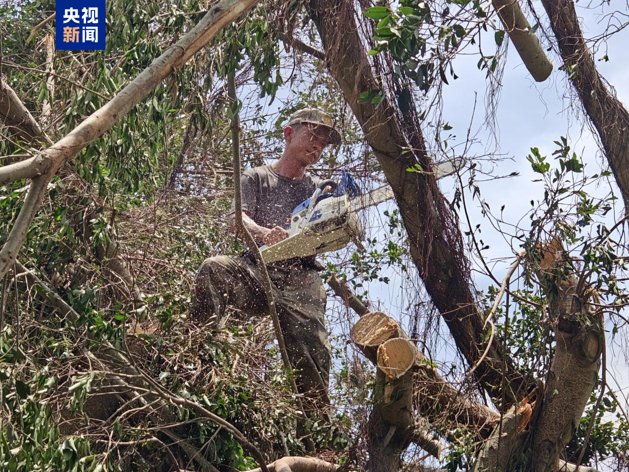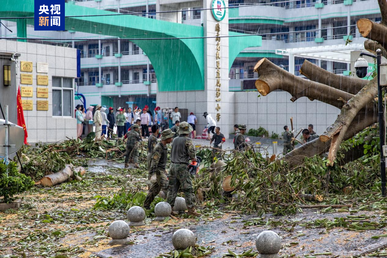 台风“摩羯”过后,海口市受灾严重。为了学校正常开学,9月8日下午,第74集团军某旅官兵展开了对灾区多所学校的援助,主要进行校园道路疏通、恢复园区秩序、恢复电力等工作。