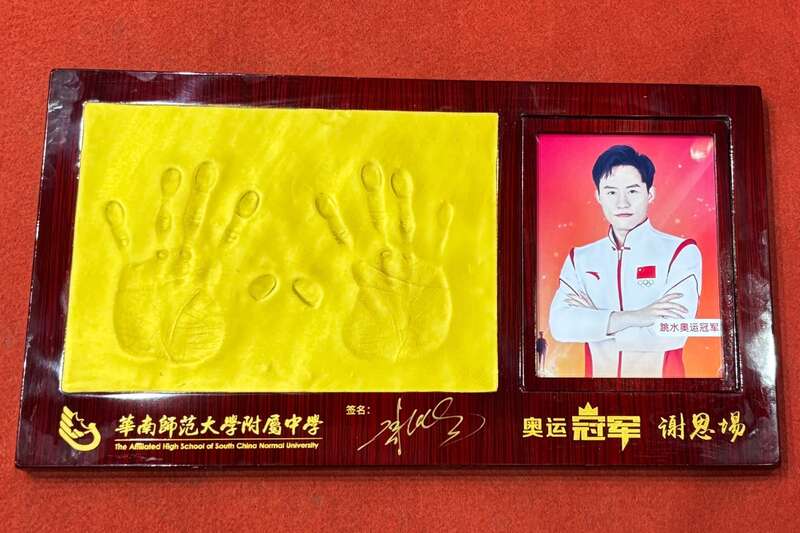 谢思埸为华南师范大学附属中学留下的手印纪念。罗天文/摄
