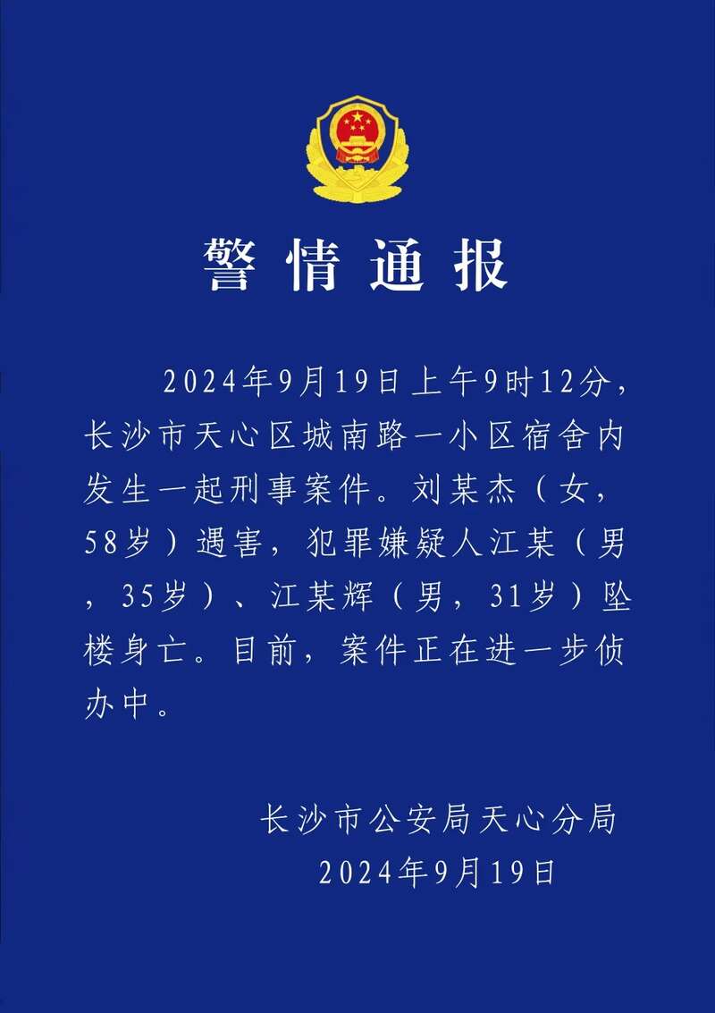 湖南长沙警方通报“刘某杰遇害案”,两嫌犯坠楼身亡