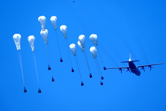 “地面苦练,空中精跳!”9月10日,在该部空降空投训练场可以看到,官兵们利用离机、平台、吊环、模拟架等训练器材井然有序地组织伞降训练,震耳欲聋的口号声回荡在营区上空。放眼望去,从地面动作到跳离飞机,从空中操纵到伞降着陆,空降兵伞降一整套训练流程在这里得到实践。