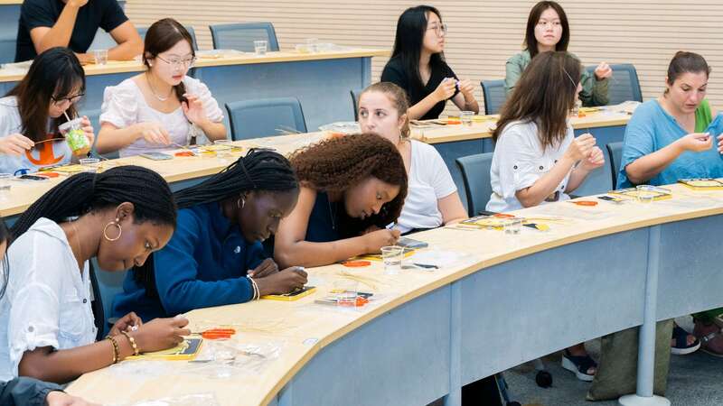 中国青年报客户端讯(中青报·中青网记者 武欣中 通讯员 车阳)开学季遇上中秋佳节。9月19日晚,深圳大学粤海校区汇星楼旁的草坪上气氛热烈,各种肤色的年轻人载歌载舞,共迎新学期的到来。这是深大南特金融科技学院开学典礼和迎新晚会的现场,来自法国南特高等商学院的37位国际交换生与其他300多名新生一起,在浓浓的中国传统节日文化氛围中开启了在深大的学习时光。