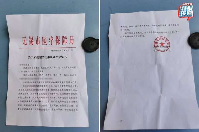 7月12日,江苏无锡市医保局表示,对朱成刚的举报高度重视,先后两次到无锡虹桥医院现场核查,但因提供的线索涉及人员较多,所反映问题距今时间较长,在前期核查中对提供线索无法确认核实,还特地与无锡市公安部门协调沟通,并将有关线索提请公安部门协助调查。公安部门核查后若有明确反馈,将及时告知。